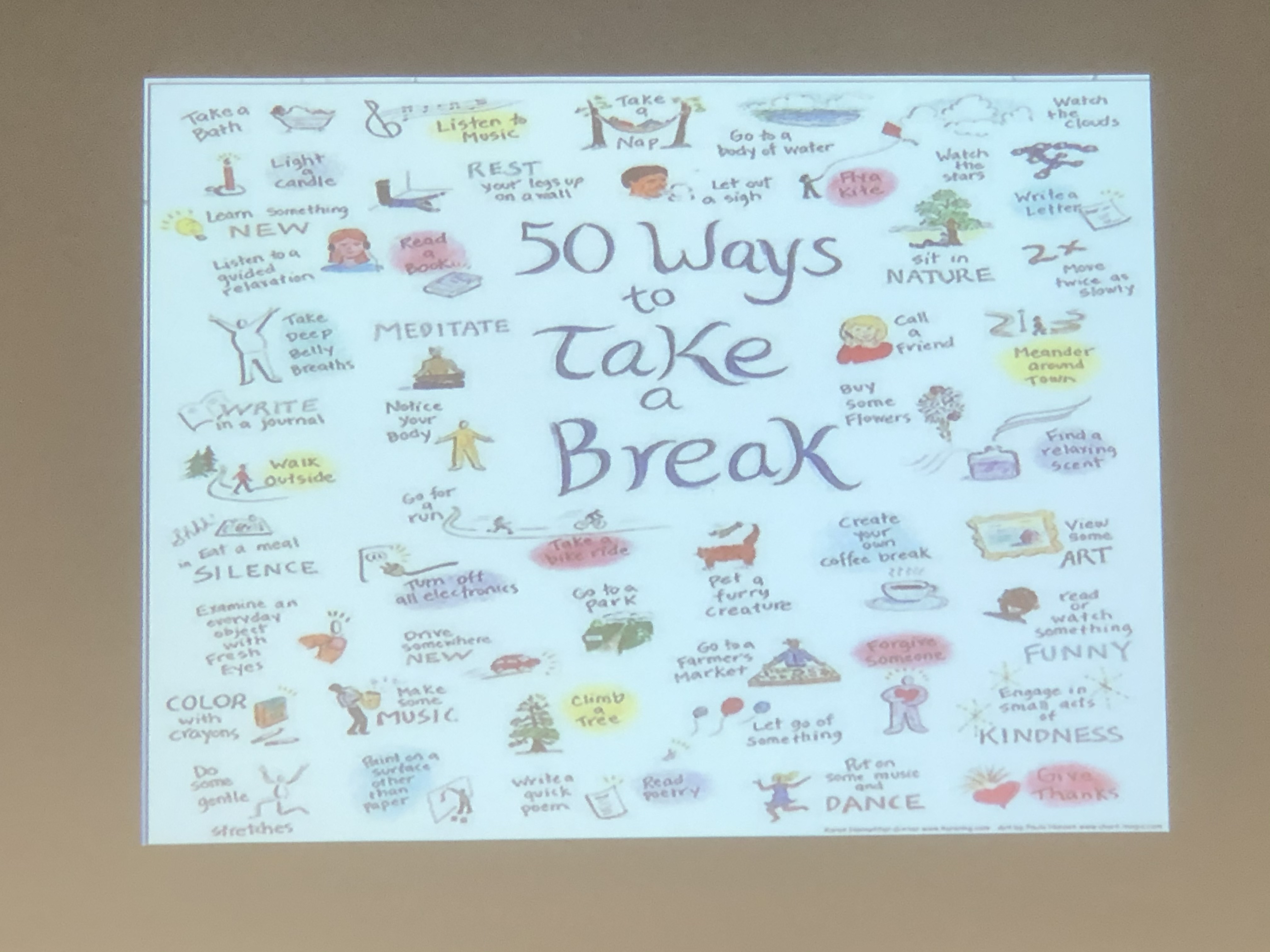 這個海報是說,可以用很多方式調節,出去散步